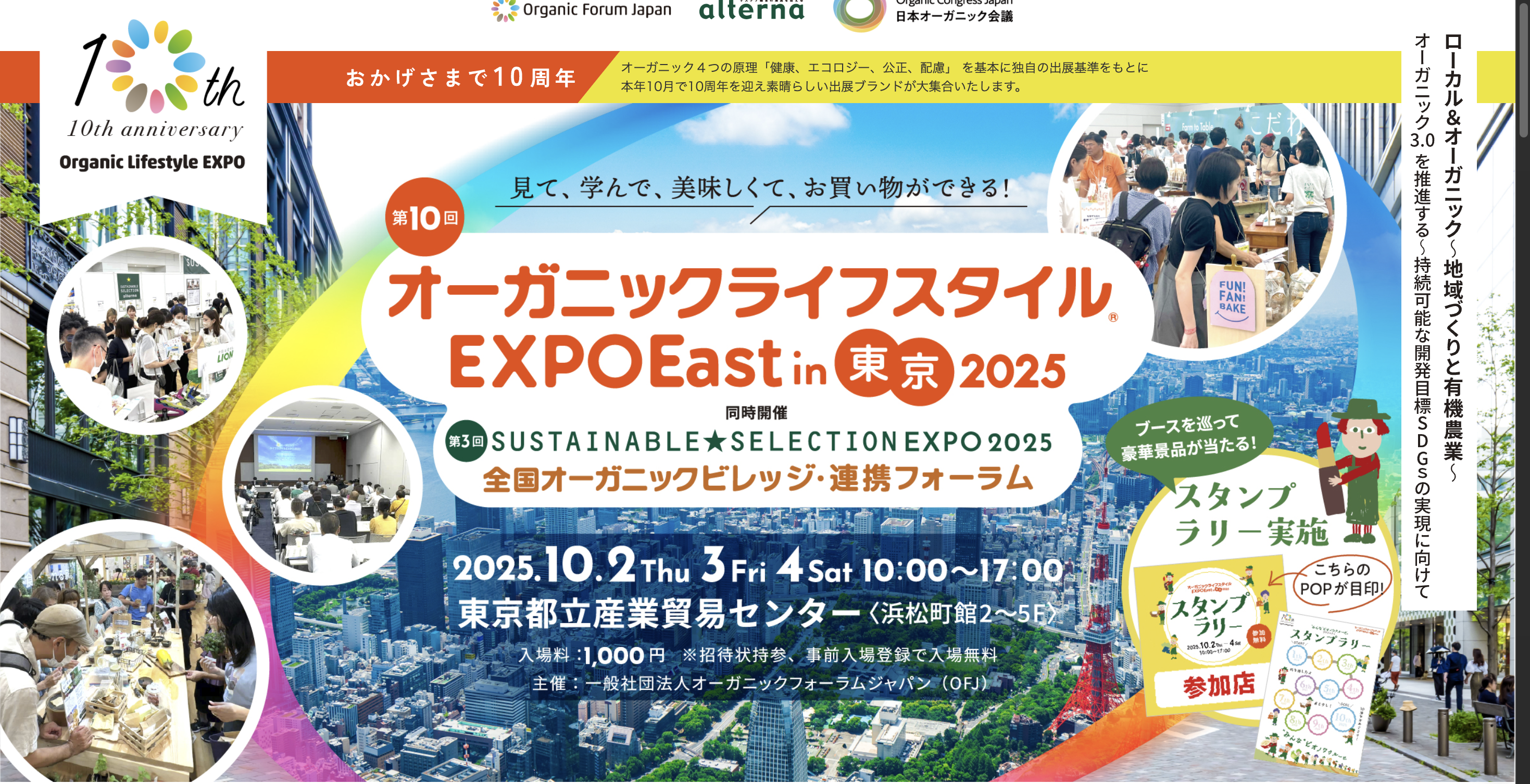 - 今年は10回記念!オーガニックライフスタイルEXPO2025 (2025/09/27)